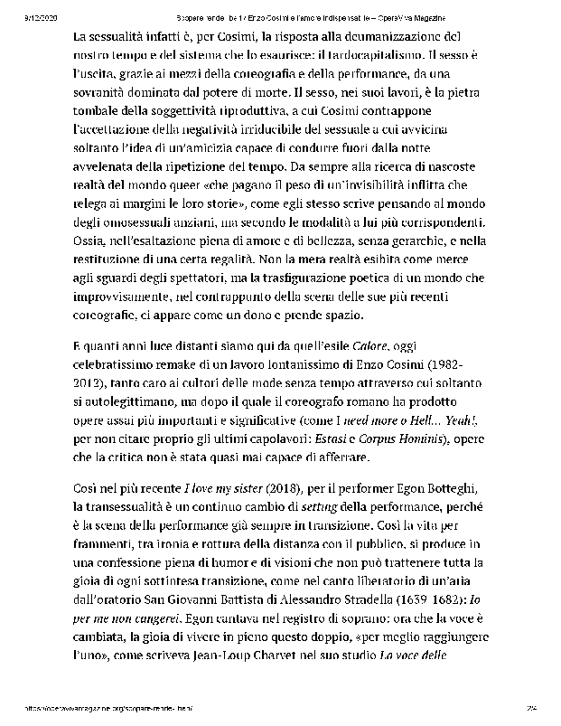 Published 24 Dicembre 2020 in interviste_Scopare rende liberi _ Enzo Cosimi e l’amore indispensabile – OperaViva Magazine_Page_2_small